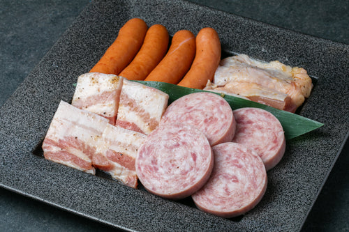 2,200粗挽きウインナー・博多地鶏もも焼き もち豚・雲仙ハム 計350g